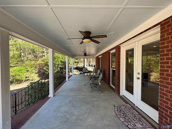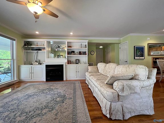 Lake & mountain views from the covered porch & a short distance to walking trails, downtown Guntersville, city schools, boat launches, public pier & much more. Features include: full brick, open concept floor plan with primary bedroom & additional bedroom on the main level, 3 bedrooms & 3 baths, custom wood cabinetry, gas log fireplace w/built-ins, hardwood floors, kitchen appliances with gas stove, natural gas water heater & central unit, tiled walk in shower, 2nd level bedroom (or bonus room) w/full bath with enough space to possibly make a 4th bedroom, generous walk-in attic storage, 2 car garage, and concrete circle drive. This home is move in ready for immediate occupancy.