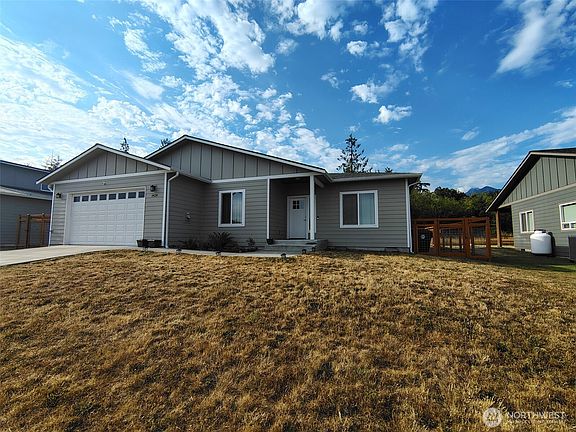 Motivated Sellers! Come check out a quality PNW home! Nestled between the Olympic Mountains and the Strait of Juan de Fuca, this quality 3-bed, 2-bath home offers breathtaking views of mountains, water, and even Canada on your daily drive. Located in a quiet neighborhood with nearby walking trails, the home features an open floor plan, modern eat-in kitchen, quartz counter tops, luxury vinyl flooring, and a high-end ductless heat pump for year-round comfort. Easy open layout, wired for EV charger install, and a fully fenced yard with cedar posts backing up to protected wetlands—providing privacy and peaceful nature views. A true Pacific Northwest retreat with modern comfort!