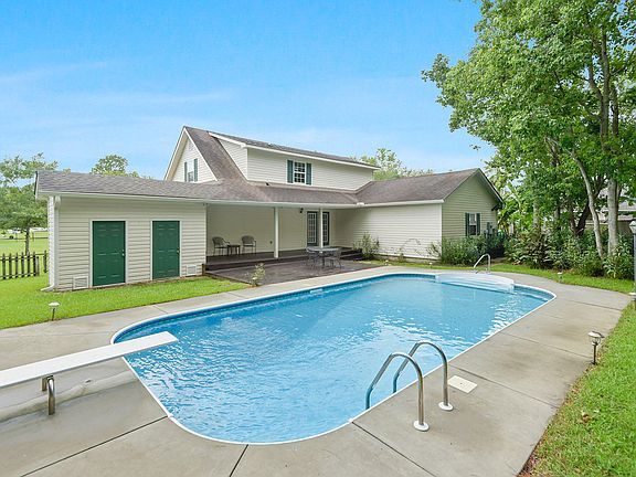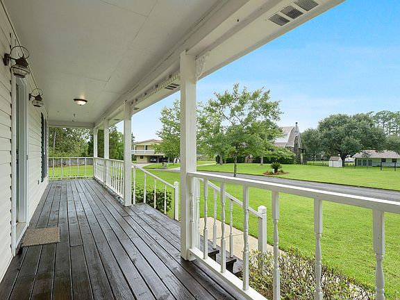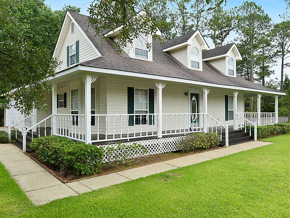 Beautiful two story home with wrap around porches. Home sits on 1 1/2 lots with oak trees and mature shrubs. Home features open living area, private master suite, two bedrooms and open bonus room upstairs. Galley Style kitchen with stainless appliances, ceramic tile back splash and two car garage. Back yard is fenced with inground pool, decks and half bath for swimming pool. Yard has sprinkler system installed to maintain landscaping. Home is well maintained and pride of ownership is apparent. Super clean and move in ready.