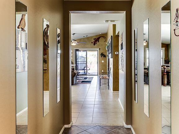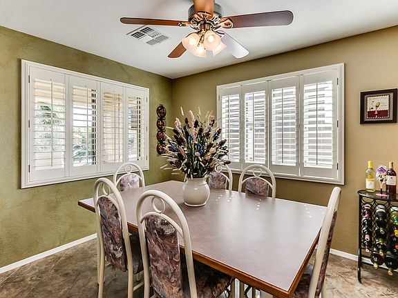 This stunning single level home sits on an oversized corner pie shaped lot located in the highly desirable Watson Estates community. This home has 3 bedrooms plus den, tile in all the right places, nice eat in kitchen, breakfast bar, spacious kitchen with plenty of cabinet and counter top space, pantry, and black appliances includes refrigerator, washer & dryer. Great room and master bedroom greets you with vaulted ceilings. Master suite is split and includes double vanity, garden tub, large shower, large closet and lots of storage. Secondary bedrooms are good size. Upon entering the backyard enjoy your evenings in this spacious desert oasis which includes an 6- 8 person hot tub, beautiful desert landscaping, putting green, horse shoe pit, spacious entertainment areas, pathway to side yards, meticulously maintained. Extras include: 4 ft extended garage, ceiling fans and updated lighting throughout home, custom interior paint, tile in all high traffic areas, shutters, covered patio, front porch area, home backs up to community paths, mountain views. Between the beauty & quality of this home, & the incredible yard and neighborhood it is part of, this home will not last long!