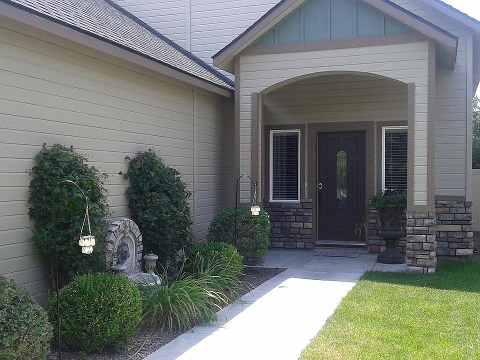 Home features . cherry cabinets, hard wood floors. Lots of closet space, Master bedroom suite, Formal dining, Vaulted ceilings, Custom large wood moldings, Pantry, mud room, Large bathrooms, Stainless steel appliances. Gas fireplace. Gas stove with two ovens. Lots of outdoor living space to enjoy. large patio with hot tub attached to the home, a granite fire pit sitting area on the back property. An intimate sitting area with fountain on the right side of the home, and a fully fenced in yard. Neighborhood Description An eight home subdivision set on a private road, Sandal creek and the green belt are a part of the subdivision, Walking distance to schools and the newly renovated Nampa historic downtown area, lots of trees, and quiet family neighborhood.