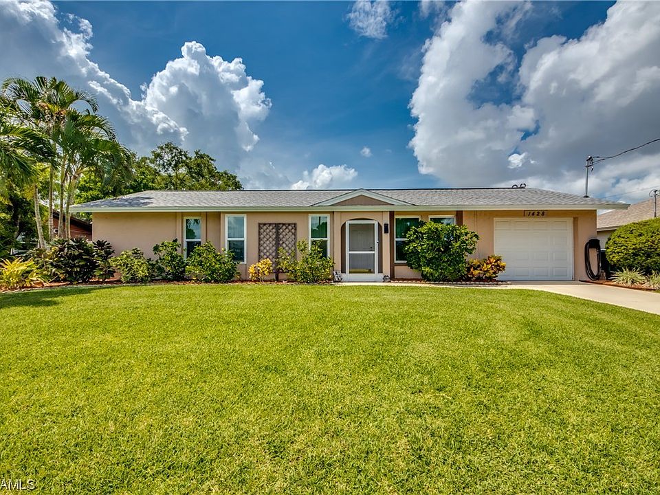 Every once in a while you come across a REAL GEM like this! Affordable, well maintained & inviting! Greeted by the perfectly manicured lush lawn & lovely garden beds, this home invites you to rest, relax & enjoy all the beauty SW Florida living has to offer. No wasted space in this 3 bedroom 2 bath floorplan! Greatroom layout with open kitchen & dining views of the oversized lanai with SOUTHERN EXPOSURE. The fenced back yard is a perfect play area for family & pets. Plenty of room to add a pool too. The oversized garage & workshop boast 548 square feet, more than a standard 2 car garage! So many extras: NEW 2022 roof, updated kitchen with granite counters, oversized newer lanai with pavers, HVAC 2017, 8 NEW 2020 IMPACT GLASS windows in home, attached workshop, fenced back yard with double gate, outside storage, automatic sprinkler system, NEW interior & exterior paint, NEW doors, baseboards & trim, 7k amp GENERATOR with transfer box & PAID city water/sewer assessments. PLUS NO FLOOD INSURANCE REQUIRED HERE. NO storm damage & NO flooding from Hurricane Ian. You HAVE TO SEE this before its gone! Central, convenient location with access to everything you need minutes away!