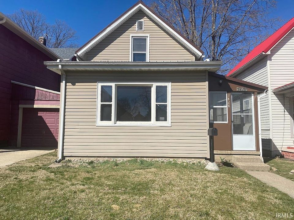 Older home, Living & Dining have beautiful Hardwood Floors. Fresh paint everywhere, Updated bath with new potty and newer vanity. Nice cedar trim above shower area, lots of built in storage. Kitchen has built in cabinets and good counter space. Small Breakfast room at the far end of the kitchen. Two bedrooms upstairs, each has 1 large window and 2 smaller windows in the knee space. The bedrooms adjoin a small hall are, but, each of the bedrooms have a stairway to the main floor. Two fire exits are always good. 2 car garage with new siding, fenced yard. Recent update include a new metal roof, new furnace, new carpet in bedrooms. Look carefully to see the 22 x 15 closet at the entrance from the living room into the dining room. It is easy to miss. Dining Room could be Bedroom 3 by adding a wall. i