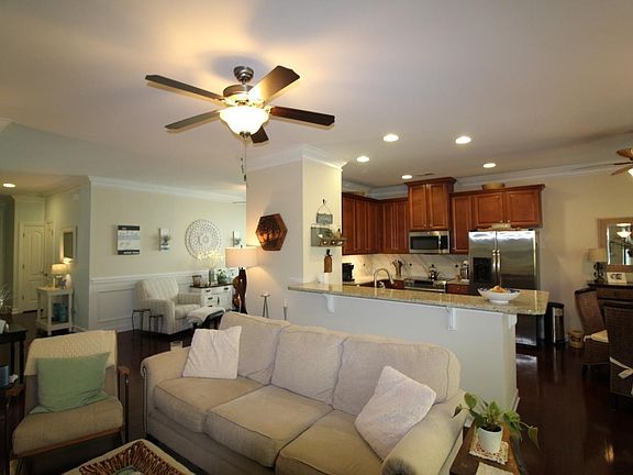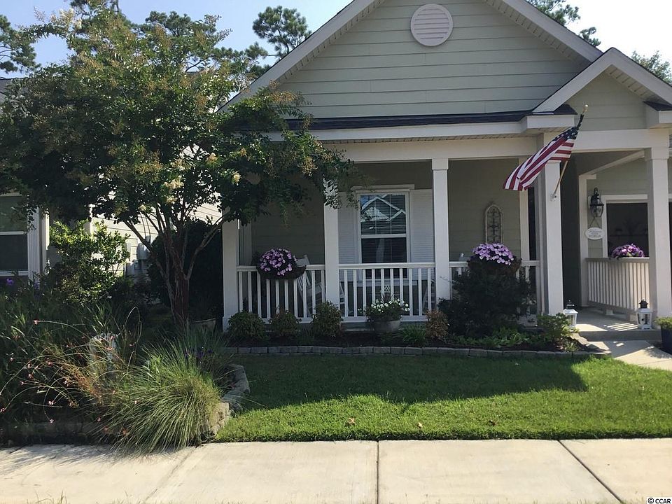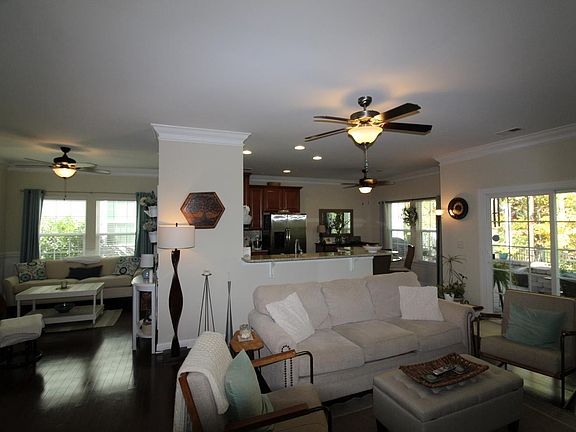 This 3BR/2BA home in Emmens Preserve is located on quiet street with Protected Conservation Woodlands behind the back yard. This is the best priced home in Market Commons & it is perfect for downsizing retirees or to use as a vacation retreat. The home features Mohawk hardwood flooring, 2” plantation blinds, upgraded ceiling fans & custom crown moldings throughout the main living areas. Emmens Preserve has access to energy efficient natural gas for the tankless water heater, home heating system, living room fireplace & a connection in the backyard for a grill. The spacious kitchen has stainless steel appliances, 42” raised panel maple cabinets, flat top stove, built-in microwave, granite countertops. The open floor plan flows from the kitchen to the breakfast nook & living room. There is a formal dining room and laundry room & features a split bedroom floorplan. The Master Bedroom Suite has a garden tub, shower, double sinks & walk-in closet The back yard with a custom-built stone patio & retractable awning is the perfect spot to enjoy your privacy surrounded by nature. The garage has a built-in workbench & storage shelving over the garage door. The owners are providing customized hurricane shutters for all windows and the sliding glass door. Located in the popular Market Commons community designed for lifestyle enhancements like sidewalks, bicycle riding & commuting via golf carts. Conveniently close to shopping, restaurants, entertainment and multiplex sporks park. Emmens Preserve has a resort size pool, clubhouse with fitness center, playground & picnic pavilion.
