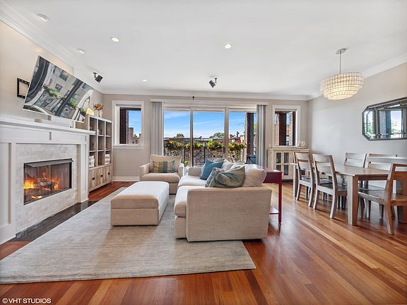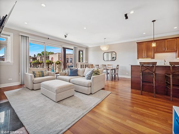 Welcome home! You must see this gorgeous, extra-wide 3 bedroom, 2 bathroom condo in Blaine School District! Spacious and open floor plan with 9+ foot ceilings and cherry hardwood floors throughout. Your beautiful, updated kitchen with 42 inch cabinets, stainless steel appliances, NEW quartz countertops, NEW backsplash, breakfast bar & wine fridge overlooks both the living room & dining room with plenty of space for hosting. Directly off the living room/dining room, you'll find floor-to-ceiling-windows (south facing) and a large covered front terrace. The primary suite features a double vanity, rain shower, jacuzzi tub, a walk-in closet and private deck. Two additional, good size bedrooms with plenty of closet space. All closets have custom organizational systems. In addition to the two private outdoor spaces off of the unit, you also have a shared, furnished roof deck (only shared with one other unit). Additional features include, in-unit washer & dryer, surround sound and 2 exterior parking spots included. Superb Lakeview location!
