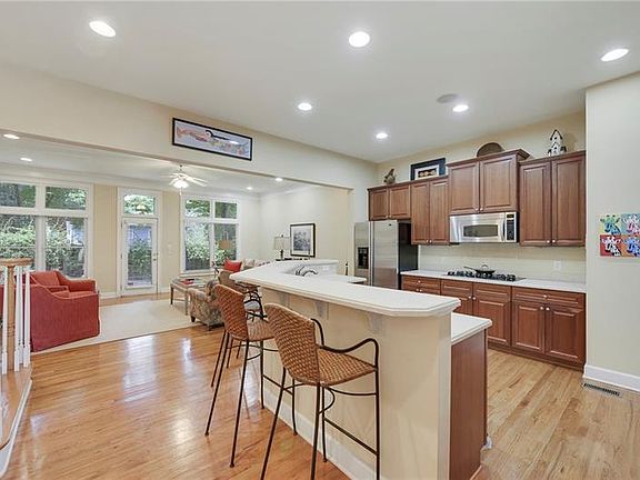 - Kitchen Features: Breakfast Bar, Cabinets Stain, Eat-in Kitchen, Pantry, View to Family Room, Solid Surface Counters