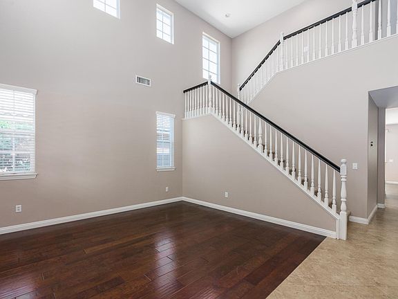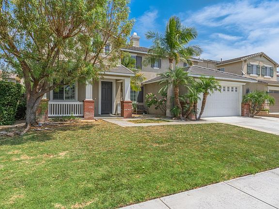 Open House Saturday November 2nd Wonderful home on a quiet cul de sac in a great neighborhood. Neighborhood reflects pride of ownership. 5 Bedrooms & 3 Full Baths. Intelligent, open floorplan with downstairs bedroom. Formal living room and dining room. Kitchen has granite countertops, Island, double ovens just in time for Thanksgiving and a new cooktop. Lots and lots of storage with an amazing custom pantry. Kitchen has breakfast nook and opens to family room with fireplace. Plantation shutters throughout downstairs. Sliding door opens to a nice patio with cover. 3 car garage with direct access to the house. Giant master with his and hers walk-in closets, shower and soaking tub. Even some of the secondary bedrooms have smaller walk-in closets. 3 more good sized bedrooms upstairs with a built-in common study desk. Walk to the grammar school and adjacent park. The Santa Ana River trail is close by. Available Immediately. Scrubbed and polished. Back yard is entertainment ready. Owner pays for HOA and Gardener. Owner may show/inspect property with 48 hour notice. No smoking No pets