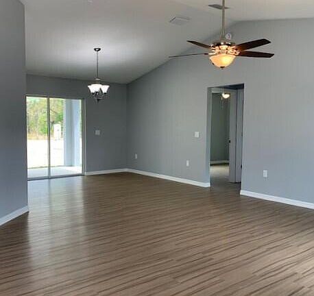 Welcome to your brand new, never before lived in home nestled in the charming community Royal Highlands. This exquisite 3 bedroom, 2 bath residence offers the perfect blend of modern luxury and tranquil living. Step inside to discover and open floor plan flooded with natural light, featuring high ceilings and tasteful finishes throughout. Spacious living area is ideal for gatherings and relaxation while the kitchen boasts with sleek countertops, stainless steel appliances and ample cabinet space. Retreat to the inviting primary suite complete with a luxurious bathroom and fixtures. The two additional well appointed bedrooms offer flexibility for guests, a home office, or hobbies ensuring comfort and convenience for all. Outside enjoy the Florida sunshine your private backyard, perfect for outdoor dining, gardening, or just unwind after a long day. The landscaped yard also features a full irrigation system to help keep the grass and gardens watered during the long warm weather. Don't miss out on the opportunity to be the first to call this remarkable home. Schedule your showing today and start living the life you've always dreamed of in beautiful Royal Highlands.