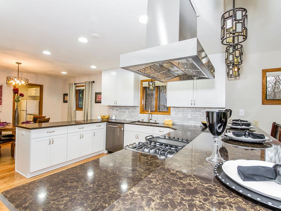 Stunning & stylish ranch in a prime location! Exceptional open concept design w/ a new chefs dream Kitchen- Quartz, soft close drawers, subway tile, top of the line appliances & prof grade hood. Breakfast bar is open to the massive GR w/ cove ceiling, stone surround FP & loads of light. The beverage center bridges the Kit to Formal Dining Room & LR where there is a 2ndFP and skylights! MBR offers vaulted ceiling, WIC & MBA w/ oversized tiled shower! Walk to new 5 acre park - Newer roof, Tnkls Htr, SEE DOCS