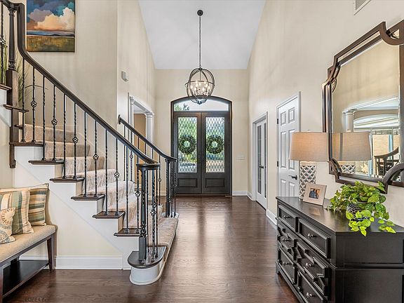 Prepare to be "Wowed" as you step into this beautifully updated Six bedroom Granger home located in popular Covington Shores. Gorgeous hardwood flooring, new light fixtures, updated staircase, high ceilings, catwalk, and gorgeous windows for an amazing water view. Perfect layout on main level with home office with french doors and built-ins to your left at entry and a formal dining room flanked by pillars to your right. The Great room is light and bright with the large windows overlooking the lake and a fireplace with recent updates. The adjoining kitchen was updated in 2022 and includes all the great features you'd expect with quartz countertops, tile backsplash, white cabinetry and hood, center island and new sink and fixtures. Additionally on the main level is the master suite with another great water view and a beautiful master bathroom that is sure to please. Moving to the 2nd floor is a junior ensuite on one end and across the catwalk are two additional bedrooms with built-in desks/shelving and a jack and jill bath. The lower level walk-out has an additional two bedrooms, full bath and a large family room with wet bar to accommodate the entire family with recreation or movie nights. The outdoor space is ideal for entertaining with an elevated deck overlooking the lake and also a lower patio area, and a great sized level backyard with play set. Located in Penn Harris Madison's top schools with Northpoint Elementary, Discovery Middle, and Penn high school. Too many recent updates to list, please see attached update sheet. To view the complete set of photo's click on the following link; https://hd.pics/x1061689