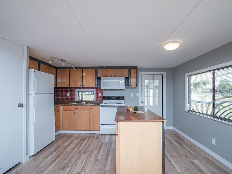NEWLY RENOVATED 2/2 home with TONS OF EXTRA SPACE!! This LIGHT & BRIGHT, beautifully updated home is move-in ready and offers a spacious kitchen with a rolling island and newer appliances. New plank flooring, updated tile bathrooms, two large lanais, partially fenced yard and 2 utility areas with golf cart storage are just some of the many perks in this home. Brand New A/C!! FURNISHINGS NEGOTIABLE. Located in the popular 55+ Brookridge community WHERE YOU ON YOUR OWN LAND with many amenities including heated Olympic size swimming pool, tennis, community center, library, fitness center, and so much more. Located near major shopping, restaurants, and medical facilities.