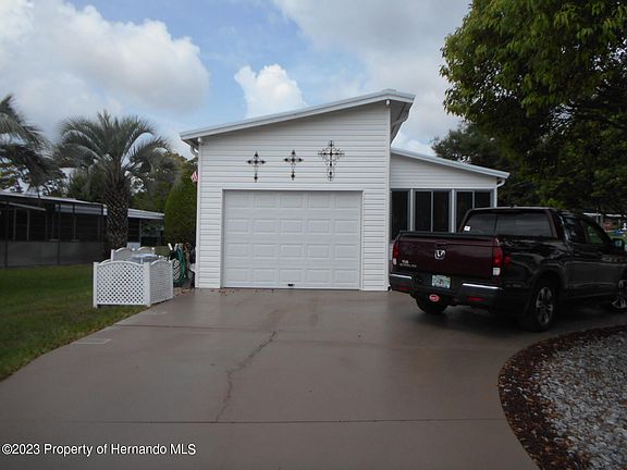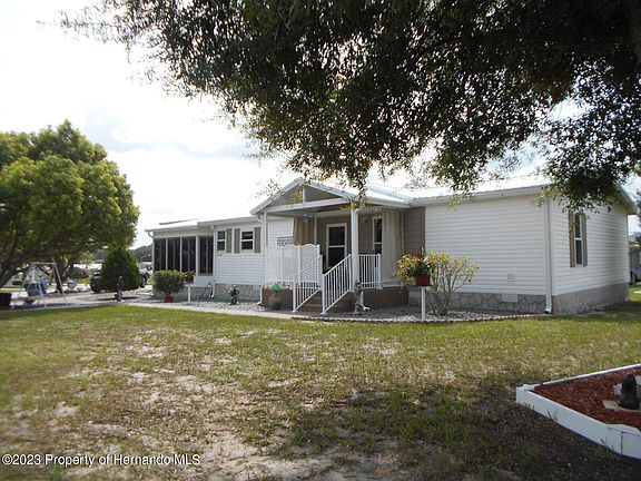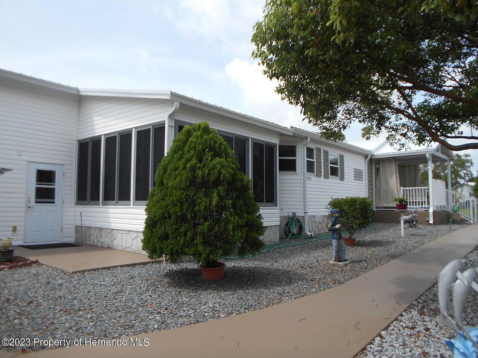 WELCOME HOME FRIENDS! TO THIS BEAUTY 3/2/1/ GARAGE HOME LOCATED CLOSE TO THE FRONT GATE AND POOL-TEE-OFF. THIS HOME HAS ALL UPGRADES, TIE DOWNS ARE IN 12'' CONCREAT WITH THE BIRD SYSTEM, NEWER ROOF OVER 3 YRS AND A/C 2023 NEWER WINDOWS THROUGHOUT HOME, SPLIT PLAN WITH A RETREAT AND ITS OWN YR FLORIDA ROOM, INSIDE LAUNDRY PARLTY FURNISHED, LAMINATED FLOORS ALL PLYWOOD FLOORS,SITTING FRONTAGE WITH THE ROAD, THE LOT IS A OVER SIZED AND ONLY $48.00 A MONTH , SO COME AND ENJOY THE FLORIDA LIVING IN A 55 PLUS COUMMINTY WHERE YOU OWN YOUR OWN LAND!!