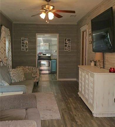 This is a cozy home on a large fenced lot. It has new luxury vinyl flooring throughout & shiplap accent walls. There is a new vanity in the bathroom and the home is decorated really cute. The large screened front porch is perfect for morning coffee or relaxing in the evening. The huge workshop will be great for many uses. There is a lovely pond in the back of the property to enjoy. All dimensions are approximate. BUYER TO TAKE FULL RESPONSIBILITY TO CONFIRM SQUARE FOOTAGE. Make an appointment today to view this adorable home.
