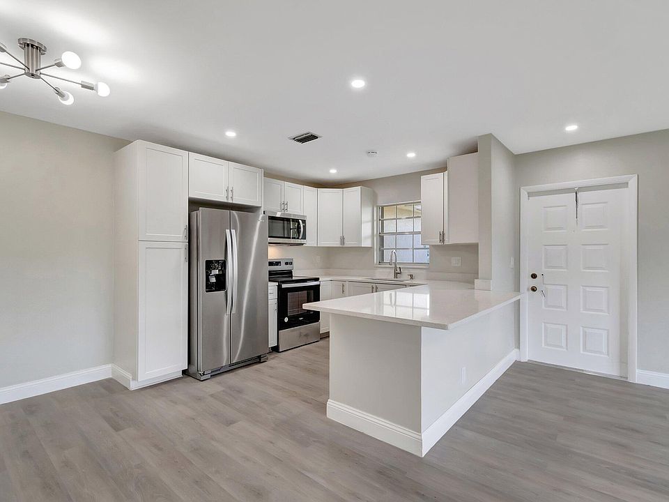 BRAND NEW AC AND BRAND HWHWelcome to your vision of exquisite living, artfully brought to life as a luxurious, modern villa in the heart of Delray Beach, FL. From the moment you first step inside this fully renovated corner villa, you'll be enraptured by the flawless blend of comfort and style, expertly designed to cater to the quintessential modern lifestyle.The superlative standard of living in this unique home is evident as soon as you step into the grand Great Room. It is crafted superbly to encourage both tranquility and social entertaining, effortlessly accommodating both needs. Adding further appeal to this captivating residence is the versatile extra Room, a complementary addition that can easily be transformed into a home office or a comfortable den. At the heart of this charismatic dwelling is a magnificent, state-of-the-art gourmet kitchen. This culinary haven is set with brand-new stainless steel appliances contrasted by classic white cabinets, all set off by the dazzling quartz countertops, seamlessly combining charisma and functionality.