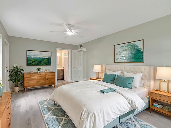 For an extra touch of luxury, the entire villa is adorned with fresh paint, and features a BRAND NEW A/C unit, a BRAND NEW hot water heater along with the latest upgrade in electrical systems. This detail speaks to the villa's intention of ensuring contemporary comfort and efficiency. The contemporary hues of luxury vinyl flooring coupled with the warm glow of high hat lighting lend the villa an airy, light-filled living experience.