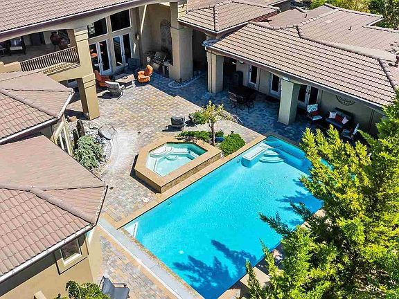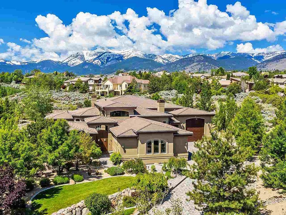 Exquisite design & stunning finishes harmonize to create one-of-a-kind resort-style living in Saddlehorn with breathtaking views of the Sierra Nevada's & Mt. Rose. Once you step inside the 10' mahogany entry doors into the courtyard, the vision of beauty comes into focus, with the in-ground pool, hot tub, built-in Viking BBQ, outdoor kitchen, and separate fully-contained guest house complete with it's own full kitchen including Thermador gas cooktop, granite counters, & KitchenAid refrigerator & dishwasher.