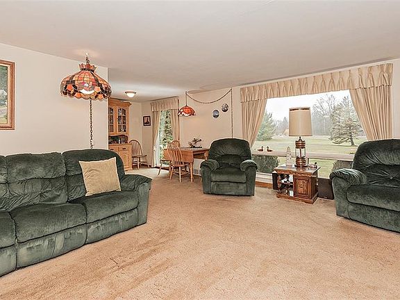 Country living in this mid-century ranch on private 1.9 acres. Enter through the arched doorways into the spacious living room with open floor plan to dining room. Kitchen boasts floor to ceiling cabinets for plentiful storage and access to deck with peaceful view into the wooded yard. Wood paneled sun room is ready for enjoyment in all seasons. The first floor is completed by 4 bedrooms - all with hardwood maple flooring - and 2 full baths. The family room on the lower level features a wood burning fireplace and bar. 2-car attached garage. Out-building measures 20x25. Many improvements include: septic 2017, central air 2003, windows 2004, whole house generator 2006, blown-in insulation 2005, reverse osmosis water softener 2002, 200 amps service and electrical box 2003, stainless steel fireplace liner 2004, roof with ridge vent and soffit vents 2005, front side walk 2009. Wood floors under carpeting! Come and make it your own!