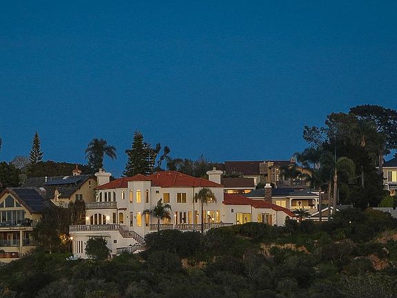 Introducing one of Del Mar's notable landmark homes located on one of the area's best view lots. Magnificent 2-story 5 BR/4.5 BA Mediterranean style home situated on a one-of-a-kind lot, perfectly positioned to capture 270 Degree Views, extending S and E to include Mt. Soledad, W for 180 Degree White Water Views, then N and E to take in Catalina Island, Dana Point & Palomar Mountain. Situated for privacy unknown to most SoCal Coastal properties & located in the trending neighborhood of Del Mar Heights.