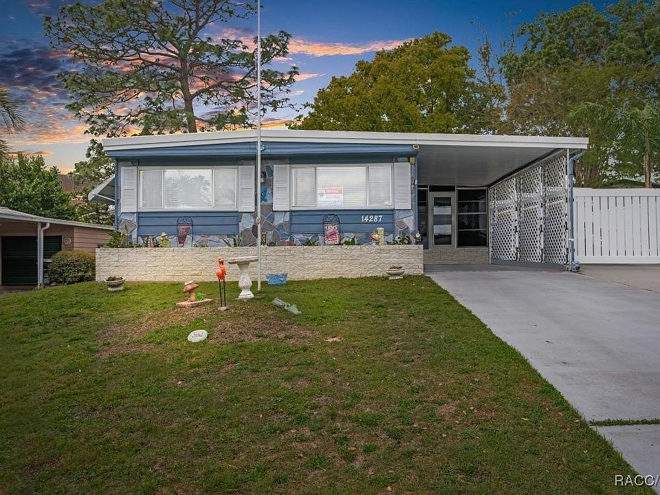 Price Improvement!! Discover this charming 3-bedroom, 2-bathroom home in the 55+ Brookridge Country Club Community, where you OWN THE LAND. This delightful home features a spacious eat-in kitchen and dining room with all major appliances included. Entertain guests in style with the spectacular wet bar room, complete with a sink, bar, and stools, which convey with the home. The split-floor plan offers plenty of space, with French doors leading to a roomy Florida room. Additionally, a screened-in lanai porch was added in 2022, enhancing the home's versatility. Other features include a laundry room, carport, golf cart garage, and large vinyl fencing. Recent updates include a new roof and A/C in 2020, and a new hot water tank in 2022. There's something for everyone to love about this home and it is perfect for entertaining guests. The community center offers residents access to a large pool, luxurious sauna, tennis courts, shuffleboard, bocce, horseshoe, weightlifting facilities, and pickleball. Golf enthusiasts will appreciate the large golf course. Don't forget to stop by the on-site restaurant for great food, drinks, and entertainment. With a new extended driveway and vinyl fence added in 2021, and almost $40K in upgrades, this home is a must-see. Come take a peek and experience all that this wonderful community has to offer! Located in a 55+ community with 24/7 security and a fully gated perimeter, this neighborhood offers a wealth of amenities to enjoy. Inside the community, you'll find an 18-hole par 72 golf course, tennis courts, shuffleboard, a putting green, horseshoes, a bocce court, a community pool, a clubhouse, a fitness center, picnic areas, and numerous other activities. Outside the community, you're conveniently close to banks, shopping, dining, hospitals, and doctor offices. Bring your golf cart and start living the Florida life today!