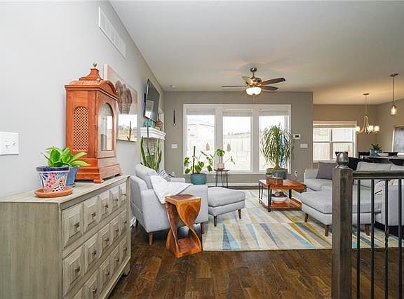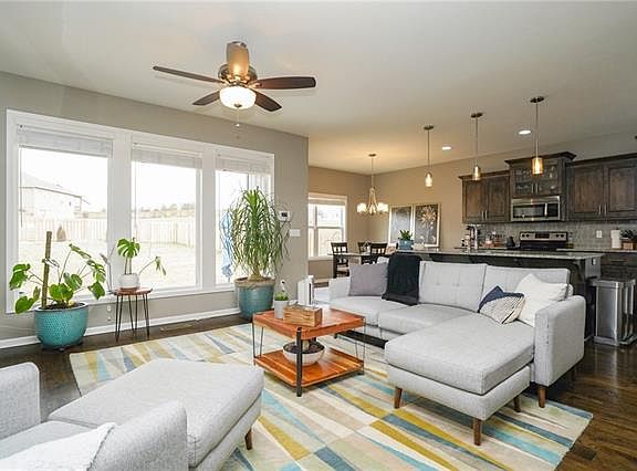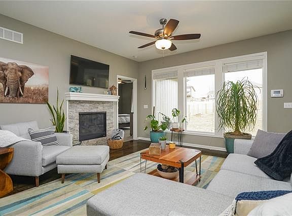 Picture perfect RANCH with all the bells & whistles! 4 bdrms, 3 full baths, finished basement and 3 car garage! This sun drenched plan is sure to please w/tons of windows, rustic hardwoods, stone fireplace & kitchen overlooking great room. Granite counter tops & island, subway tile, walk in pantry, stainless steel appliances (all stay, including fridge washer & dryer). Finished lower level features family room, bedrooms 3 & 4, full bath with double vanity. Walk-in closets, generous room sizes, sprinkler system, privacy fenced yard & plush landscaping. Just steps from Olathe Lake, Park and quick commute to highway. Move in ready, better hurry! 2021-03-10
