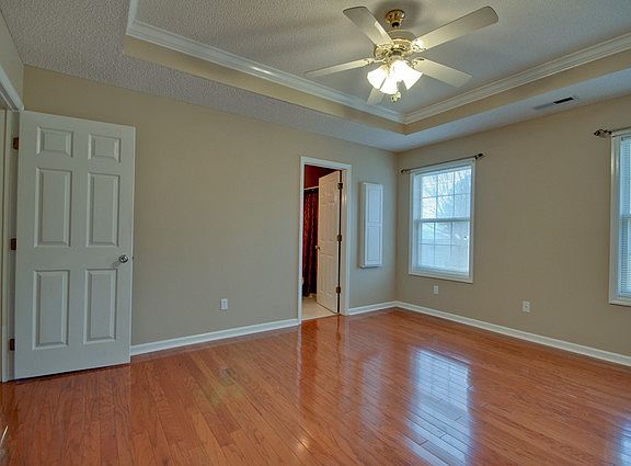 - MASTER BR DESC: Wood Floor, Ceiling Fan, Walkin Closet, Window Cov, Trey