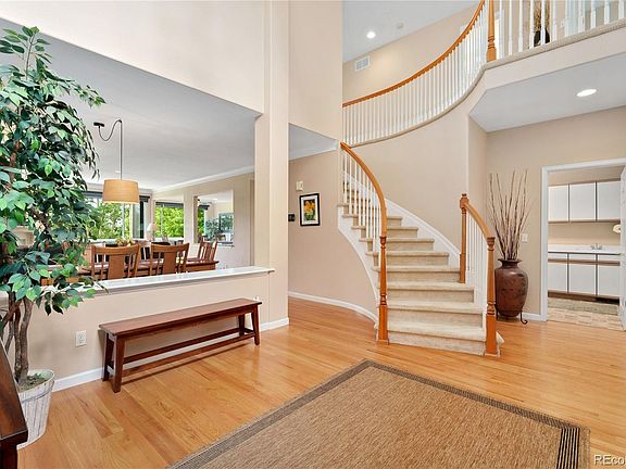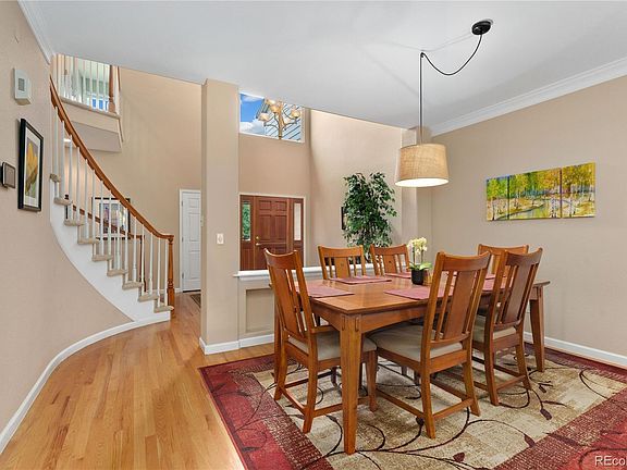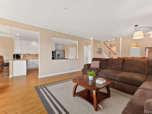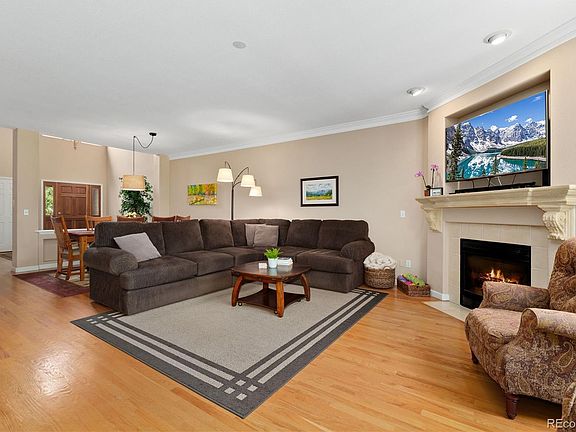 Calling all golf enthusiasts; don't miss this rare opportunity to own a beautifully updated townhome backing to the Meadow Hills Golf Course! Unique golf course living paired with exceptional indoor/outdoor living capability and great views all year round awaits! A wonderful first impression is provided by a dramatic 2-floor vaulted foyer that greet you as you step inside the front door. Beautiful hardwood floors gleam throughout the spacious open concept main floor and are accented by brilliant natural light, elegant crown molding, tall ceilings, and a cozy gas fireplace. Seamlessly transition to outdoor entertaining via a sliding glass door off the breakfast nook that opens out to the sizable updated Mahogany deck that has a retractable awning. The remodeled kitchen has been opened up to the living room for easy connection and conversation with family and friends and features lovely granite countertops, a breakfast bar, abundant crisp white cabinetry, a walk-in pantry, and stainless steel appliances including a gas cooktop. Take the striking open staircase to the upper level primary suite that delights with an expansive bedroom, 3 closets (including 1 walk-in closet), a luxurious 5-piece bathroom, and lots of windows that offer views of the park-like golf course that is framed beautiful trees and a lake (in the winter, you can see Pikes Peak!). Two more bedrooms and another full bath with double sinks complete the top floor. Guests will love the finished walkout basement that hosts an expansive family room that opens out to the patio, a full bath, a conforming bedroom, and a bonus space ideal for an office. There is plenty of storage space, too! Unbeatable location in a welcoming neighborhood blocks away from a public pool and tennis courts and only 1 mile away from Cherry Creek State Park. Convenient to the light rail, DTC, DIA, and downtown Denver. This is a wonderful place to live and play!