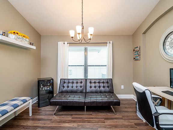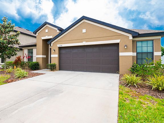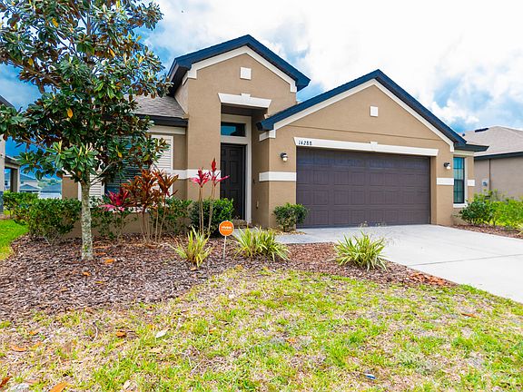 This 2015 3 bedroom + den home has been immaculitely kept and is move-in ready! Some builder upgrades include; granite counters (large breakfast counter/center island, great for entertaining) 42' wood kitchen cabinets + moulding, 2 and a half car garage (extra space and new garage springs & service on garage door motor), undermount sinks, screened in lanai, 6' baseboard, lifeproof vynal wood look flooring throughout. Master suite is spacious and bathroom has garden tub and seperate shower, dual sinks. Formal dining room, den/office, inside laundry room, all appliances stay (including washer and dryer). Beautiful commuinity with Clubhouse, community pool, Publix at the community entrance, close and convenient access to the Suncoast Parkway, sidewalks throughout neighborhood great for long walks with you family and pets! Lovely community with low HOA fees, NO CDD fees! Come and view this fantastic home today!