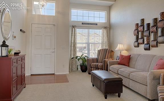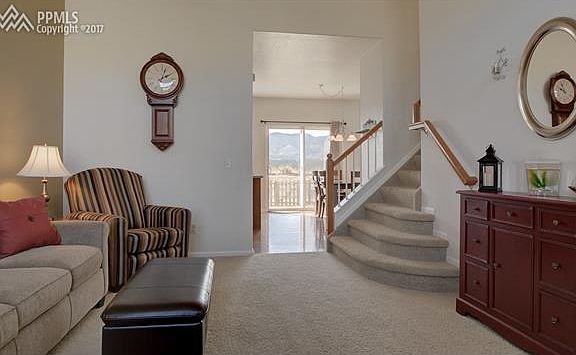 Absolutely stunning two story home in D20 with unobstructed Pikes Peak views. This house is everything you are looking for, with four bedrooms upstairs including a dreamy master suite with perfect mountain views, a huge walk in closet, and a five piece bath, and a second full bathroom on the top floor for the other three bedrooms to share. You will fall in love with the beautiful kitchen with upgraded cabinets, an island and an eating area with more amazing views of the entire mountain range. The family room has a gorgeous mantle around the fireplace and is perfect for watching movies or a game night. The unfinished basement is already pre-plumbed for a bathroom, and has plenty of potential for a second entertaining space. Breathe in the fresh Colorado mountain air in the tranquil back yard, already landscaped with a large patio for outdoor dining and grilling out. The opportunities are endless with this breathtaking home in the highly desired community of Falcons Nest. (Information should be considered reliable but not guaranteed. Buyer to verify square footage, schools, HOA, zoning, and all other information provided.)
