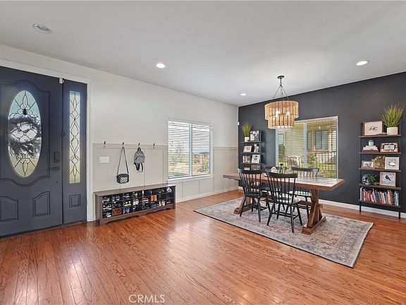 VIEWS! VIEWS! VIEWS! Welcome to 14289 Meadowlands Drive — a beautifully upgraded Riverside home featuring 3 bedrooms, 2.5 bathrooms, and 2,465 sq ft of living space on an expansive 8,276 sq ft lot. From the moment you step inside, you’ll notice the unique design touches and thoughtful improvements throughout. You’re greeted by an inviting entryway with a formal dining room to the left. Continue into the heart of the home to find an open-concept living space with a bright kitchen, dining nook, and living room centered around a beautiful fireplace. The upgraded kitchen opens seamlessly to the main living area, creating a warm, welcoming space ideal for daily living and entertaining. You’ll love the huge walk-in pantry with custom checkered paint and abundant shelving for organization. Direct garage access adds everyday convenience — especially on those grocery-heavy days. Head upstairs to the oversized primary suite, featuring two closets, dual vanities, a separate soaking tub and separate shower, and a private toilet closet. Large corner windows bring in incredible natural light and stunning views you’ll never get tired of - especially on the Fourth of July. Secondary bedrooms are generously sized with custom paint and great storage options. A spacious landing provides the perfect spot for a desk or cozy reading nook, and the upstairs laundry room also features custom paint and upgrades. Multiple updates have been completed throughout the home, offering comfort, style, and peace of mind. This home also has newer leased solar panels, providing energy efficiency and cost savings. The large backyard includes a swingset, fruit trees, and ample space to relax, play, garden, or reimagine into your dream outdoor retreat — perfect for entertaining, pets, or future enhancements. Located in a desirable neighborhood close to shopping, dining, parks, and commuter routes, this home blends character, upgrades, and space in a fantastic Riverside location.