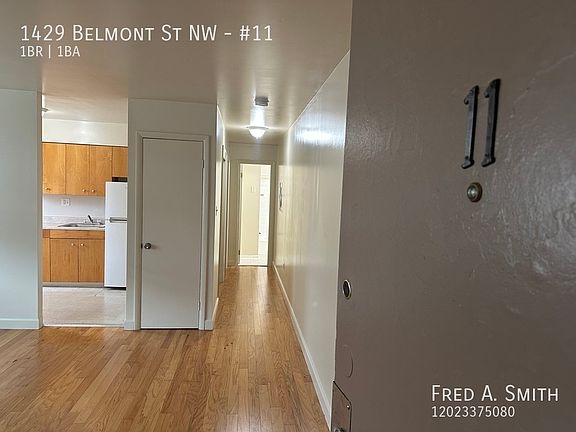 LOCATION: 1429 Belmont Street NW, Washington, DC 20009 Spacious One Bedroom Apartment Unit #11 Rent $1525.00 per month VIEW A WALKTHROUGH VIDEO or SCHEDULE AN APPOINTMENT AT FASDCRENTALS.COM Open this Saturday 10:00am 11:00am Call for Weekday showing Please contact Fred A. Smith Company for questions related to application and leasing. NEIGHBORHOOD/BUILDING HIGHLIGHTS One-Bedroom apartment located between 14th & 15th Street NW, only one block from Meridian Hill/Malcolm X Park. Conveniently located between U-Street Corridor and Columbia Heights with easy access to many restaurants, cafes, shops, bars and parks. Half-mile to U-Street Metro Station (Green Line) with easy access to many bus lines and bike/car shares nearby. INTERIOR HIGHLIGHTS Refrigerator & Range Hardwood Cabinets Hardwood Floors Ample closet space Coin-Operated Laundry Access Cable Ready On-Site Manager LEASING INFORMATION Available now Online Rental Payments and Maintenance Requests Hot Water & trash included Tenant pays all other utilities Street Parking No pets, service & companion animal welcome Professionally managed by: Fred A. Smith Company 730 24th Street NW Suite #19 Washington, DC 20037 | FASDCRENTALS.COM |