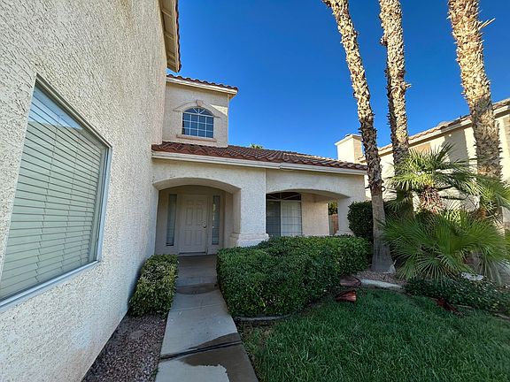 Open & Spacious Green Valley home in a gated community. There is a bedroom & 3/4 bath downstairs as well as an office/den with built-in desk. Upstairs has 4 additional bedrooms and a loft. Marble trim in the entrance and on the gas fireplace. Garage has built-ins for storage. Sunken living room. Pool service $125 month /Landscape service $125 mth .Trash/filter service 33$ per mth. Front porch & covered patio in back by pool.
