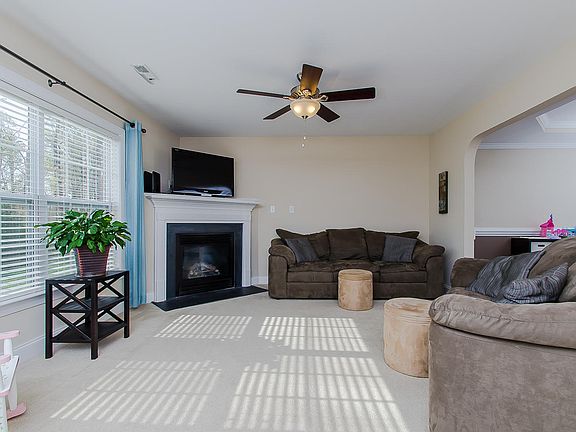 Absolutely charming single family home in a wonderful Holly Springs community! Move-in ready w/ plenty of space and room to grow! 4 bedrooms, 2.5 baths and a 2 car garage with a nice backyard! Generous laundry room on the first floor. Large patio in the backyard that backs up to trees! Spacious master suite w/ a huge garden tube, dual vanities + big walk-in closet. Bright & open floor plan w/ lots of natural light. GAS RANGE in the kitchen + upgraded fridge! Gas log fireplace. Perfect & at a GREAT PRICE!