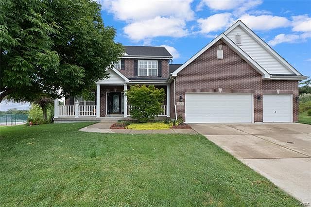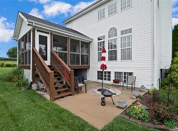 STUNNING story and a half situated on a prime cul de sac lot in the Orchard Golf Course community. This .4 acre lot backs to the community tennis courts and community inground pool. Enjoy the large yard from the screened in back deck, back patio, or covered front porch. Inside there are gleaming hardwood floors, french doors into the den, formal dining room, and a stunning family room that offers soaring ceilings, custom woodwork, gas fireplace with built in bookshelves, and tons of natural light from the expansive windows. The eat in kitchen has tiled floors, breakfast bar, granite counters, cooktop, double oven, and tiled backsplash. The main floor has a convenient half bath, laundry room with sink, and a large main floor master bedroom with a bay window, vaulted ceilings, walk in closet, and a luxury master bath with dual vanities, jacuzzi tub, separate shower and water closet. Upstairs there is a loft, three more bedrooms and a full bath. Minutes to Scott Air Force Base!