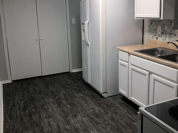Four bedroom and two bath house with fenced backyard. This one and a half home is freshly painted with new carpet and luxury vinyl tile throughout. The updated kitchen has a tile back splash and white cabinets.