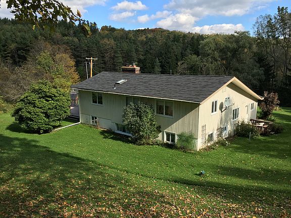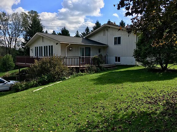 Tully NY. Move in ready, new roof and boiler, gardeners paradise, 8.1 acres with stream and small barn. Spacious open plan 5 bedrooms 3.5 bath split level 2 fireplaces, family rm, south east exposure, great views. Full eat in kitchen w/adjacent laundry rm< easy 5 steps up or down to bedrooms.heated 2 car garage, walk out basement. Master with walk in closet and full bath, beautiful lot on quiet rd.