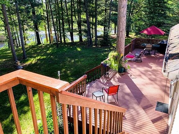 Spacious 4 bedroom, 2 bath, lake home in Tomahawk. This home has a beautiful level lot with privacy as well as walking distance to the school. There are 2 bedrooms on the main floor and 2 on the lower level. Hardwood floors throughout the home. Kitchen has been nicely updated with custom cabinets, granite counter tops, Jenn Air stove, built in cutting board, spice rack, wine rack and pantry area. Wood floors in entryway and dining room. Wood Fireplace in living room with a covered front porch with dimming lights. Lakeside master bedroom with a great view. There is an unfinished bonus room above the 2 car garage. Lower level has a finished rec-room with free standing gas fireplace, office area and large workshop with entrance going up to garage and 1/2 bath. Lake side deck with views of the Wisconsin River that leads into Lake Mohawksin. You can enjoy great fishing, boating and even stop for a bite to eat or drink.
