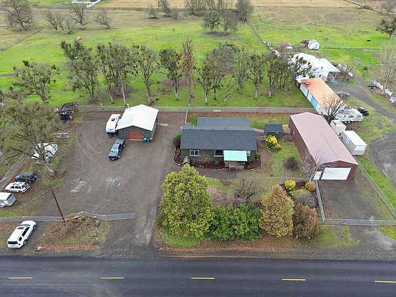 This unique property seems to have it all! Gorgeous remodeled 3 bedroom / 2 bath home has a split floor plan with a large living room. There are 9 ft ceilings throughout the home. Newer windows, paint, HVAC, and flooring are among some of the upgrades. The kitchen has tile counters, stainless appliances and oak cabinets/cupboards. Off the back of the home is a covered porch that has beautiful views. Outside you will find a separate shop with 220. There is plenty of RV parking as well as full hook ups on the side of the shop. The bonus is a huge building that has a two car garage in the front and a huge bonus room in the back. A new sewer line goes to the building since the middle section is being used as a licensed Food Processing establishment. The potential for this to be continued to be used as a food processing kitchen or more by adding a bathroom is endless. This country property is over an 1/2 acre and is close to Central Point. This could be the perfect set up