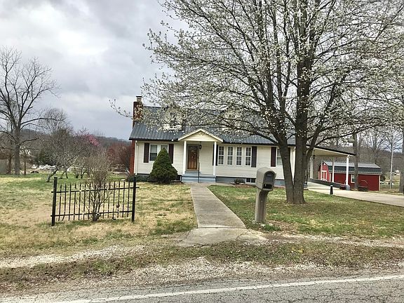 This 1 1/2 story cape cod style house has 3 bedroom and 1 bath. The home has a large kitchen with eat in dining and a gas range, large living room with sitting room and fireplace. Master bedroom on main level and one bath. Upstairs there are 2 bedrooms and a large walk in closet/storage area. Mud room entry with laundry. There is a full unfinished basement and an attached carport with additional detached carport in back yard. Metal roof, vinyl double pane windows, vinyl siding, central heat and air with an additional gas wall heater in living room. Large level lot with gentle roll to back yard garden spot and fruit trees. Just footsteps to Grayson Lake, only 2 miles to Grayson Lake boat launch and picnic shelters, 2.8 miles to Hidden Cove Golf course and Campground and just 4 miles to the Grayson Lake Marina and approximately 8 miles to downtown Grayson.
