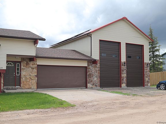 If you've ever wanted to walk from your house to the shop without going outside in the Wyoming weather, then this house is for you! The entire house has recently been remodeled, painted throughout and has new carpet downstairs. Outside there is a large fenced back yard, with underground sprinklers and mature trees in both front and back! There is a large deck that comes with a BBQ already attached to the gas hook-up ready for your summertime grilling and a swamp cooler to keep you cool. Solar panels are paid in full and keep the bills to a minimum during the summer months. But wait, there's more! The 900 square foot shop, with additional square footage in the loft, is the perfect man-cave or she-shed! It comes equipped with cabinets, a generator hook-up for the house with generator included, 220 volt for RV hook-up and has 16 foot doors. The loft is a great space and can be used for a variety of things. RV can be parked inside or there is room on the side of the shop! This house sits on almost 1/4 of an acre! Don't miss this fantastic one-of-a-kind home!