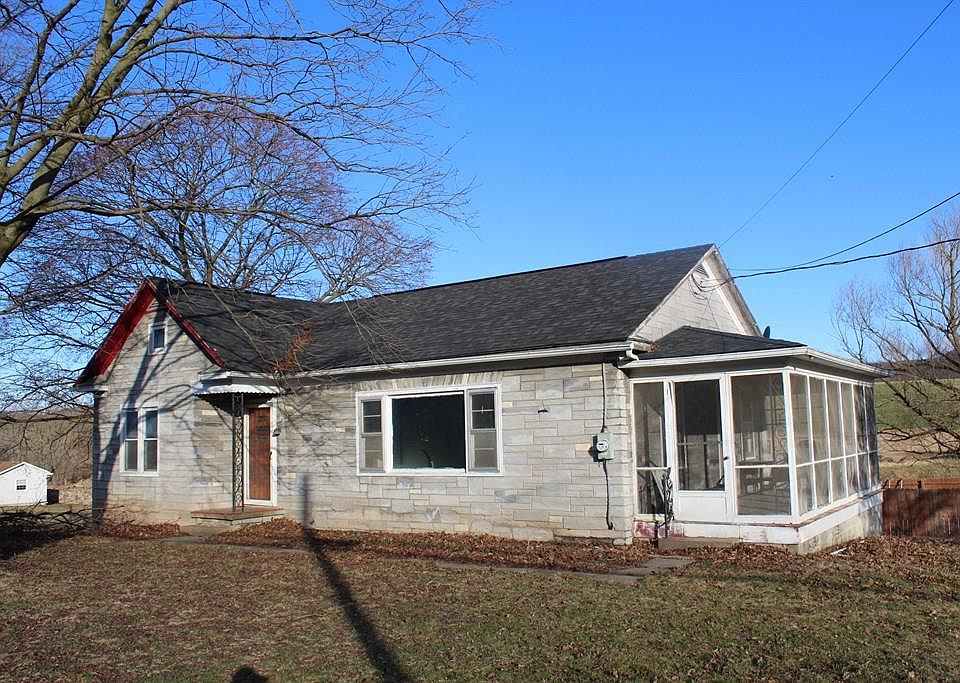 Stone veneer ranch home in rural setting in need of some TLC. Fenced in-ground pool to the rear. 1 car integral garage.