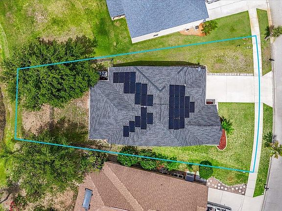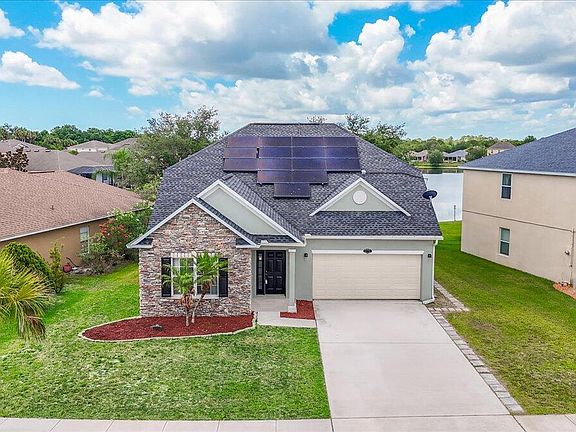 Welcome to the highly sought after neighborhood of Adamson Creek that offers a community pool, walking trails, fishing piers, and more. Spacious waterfront lot, paid off solar panels, and beautifully updated. Inside you are immediately greeted with wood-look tile with 5.25'' baseboards throughout the downstairs, large dining room, and immaculate kitchen with white shaker cabinetry with lifetime warranty, soft close, granite countertops, huge pantry, recessed lighting, and newer stainless steel appliances. The master en-suite is downstairs and offers his and her closets, wood accent trimmed walls, garden tub with separate shower, and double vanity complete with granite counters. Upstairs you will find a 2nd living room/loft, accessible attic storage, and all of the guest bedrooms. 2020 Roof/gutters, 2023 solar panels(paid off), fenced-in yard, deep well irrigation, hurricane garage door/shutters, and huge screened-in back porch. Amazing neighborhood, and completely move in ready.