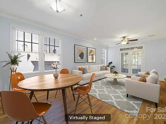 Lovely, spacious condo in the heart of Historic Plaza Midwood. This 3 bedroom, 3 bathroom corner unit cottage is just steps away from everything Midwood has to offer. Only a short walk away from restaurants and shops. The spacious primary bedroom on the main level boasts seasonal city views, while the kitchen is equipped with stainless steel appliances and a gas range. The third bedroom upstairs makes for a great office for the perfect work-from-home setup. Plus, storage won't be an issue with a private storage room on the ground floor and a separate detached garage. The community garden and firepit in the back make this quaint complex feel like a home. *Water included in HOA fee