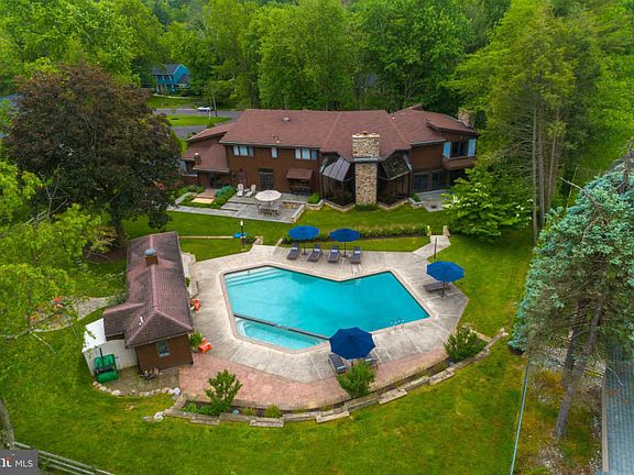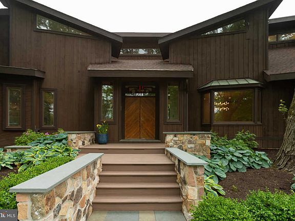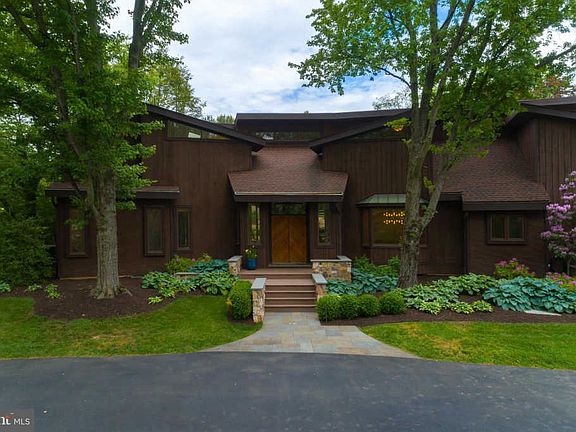 Grand and artful, this magnificent suburban residence is an architectural gem in quaint Meadowbrook. The remarkable postmodern home is highlighted by contemporary and Midcentury finishes throughout, from atrium windows, to vaulted ceilings, wood beaming, state-of-the-art appliances, and sprawling lush grounds with a pool, pool house, and multiple outdoor enclaves for dining & lounging. Tucked amongst mature landscaping for optimal privacy, reach the 5000+ sq/ft residence via a long paved driveway, and marvel at its alluring curb appeal. The designer home's unique slanted roofs, wood siding, signature stone accents and triangular windows speak to its Midcentury modern roots. A stark contrast from an understated exterior, enter the home to a bright and airy 2-story foyer and you are instantly greeted by the property's grandeur. Continue through to a focal 2-story living room with a stunning floor-to-ceiling stone fireplace, full coverage atrium windows, and crisp wood beam accents throughout. An oversized eat-in Chef's kitchen is fully equipped with ample storage, designer appliances, center island, custom cabinetry, and pantries. Sliding doors lead to a large outdoor patio for seamless entertaining. The 1-acre lot also includes a large in-ground pool with extensive hardscaping, pool house, covered outdoor kitchen, bar, and fire pits. The first floor also includes a formal dining room, office, and den with an additional fireplace. Follow the open wood staircase upstairs and a floating breezeway leads to spacious bedrooms and polished bathrooms, including a luxury Master Suite with a jacuzzi tub, walk-in closets, and private balcony with a spiral staircase leading to the outdoor oasis. The home also includes a finished basement, laundry quarters, and 2 car garage with an extra large circular driveway. This one-of-a-kind residence is not to be missed! Schedule your showing today!