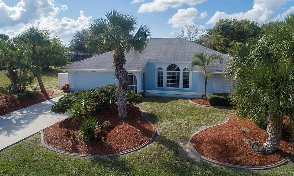 Impressive 3 Bedroom, 2 Bathroom home with attached 2 Car Garage located in the desirable deed restricted community of Deep Creek, across the street from the Golf Course. Flood insurance is not required for this property. *** BRAND NEW ROOF IS COMING JAN 2022 ***This spacious home offers lots of light through large windows, an open and split bedroom floor plan, Great Room, Dining Room, Family Room with wood burning Fireplace, well appointed Kitchen and Inside Laundry Room. The Great Room features tile flooring, plant shelves and large windows. The Kitchen offers a breakfast bar, dining area, granite counters. The Master Bedroom suite features lanai access, a large walk in closet and private bathroom with his and hers sinks and large walk in shower. ***The Master Bathroom is being remodeled January 2022. Ask your agent for details attached to this listing.*** There are two additional bedrooms, one bedroom with built-ins, and the guest bathroom with granite counters and tub/shower combo is also a pool bath. The guest bathroom has a new vanity, sink and toilet. The Inside Laundry Room offers a stacked washer and dryer and laundry tub. Your living space extends via sliding glass doors to the spacious screened lanai and pool area with large 26x16 heated inground gunite pool, large covered lanai and plenty of open deck for sunbathing. Other features include: lush tropical landscaping and lemon trees, arched windows and doorways, a bahama shutter in the front of the house, plant shelves, tile through most of the house and the Master bedroom -NEW high quality wood laminate in the Family Room and guest bedrooms. ** Furniture is available** This home is located minutes from Golf, I-75, shopping, dining, entertainment and is a short drive to medical care, waterfront parks, boat ramps and fishing piers. This home is perfect for a family or those expecting lots of winter visitors and won't last long on the market!
