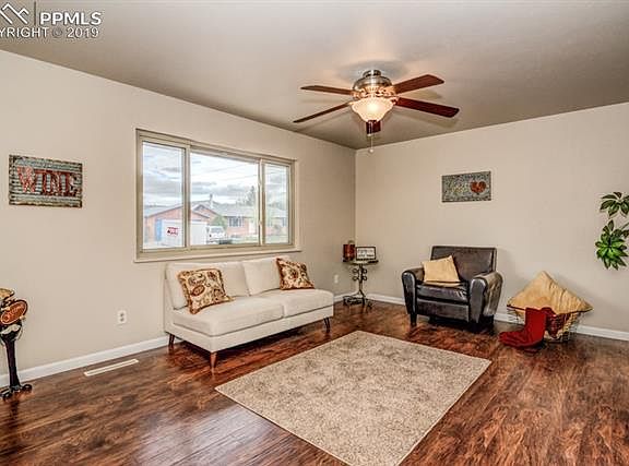 Come see this beautifully upgraded home in Fountain. Large corner lot Xeriscaped for low maintenance. Great 5 bedroom home on a quiet well established street and neighborhood. You will love all the new flooring throughout. This home has Central AC and ceiling fans for the warm summer days ahead. New engineered wood flooring throughout the main level and brand new carpet in the master and lower level living room and bedrooms. New roof installed this past fall and all new interior paint throughout and baseboards. You will love the stone wood burning firepit in the backyard for the cool Colorado evenings . Come see this beautiful rancher and make this house your home. There's plenty of space to grow and entertain guests in the enormous fully finished basement.