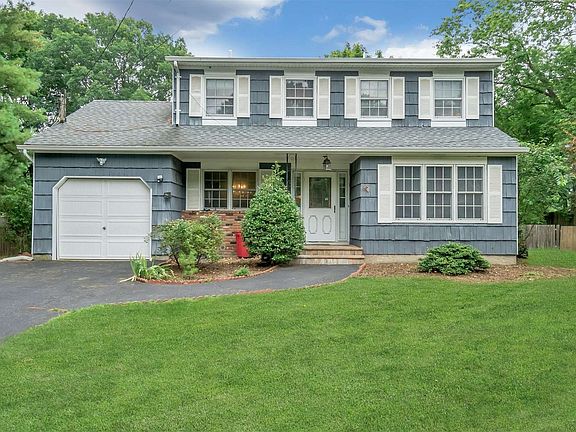 Four bedroom, 2.5 bathroom colonial on .46 acres with one car attached garage and a full unfinished basement in Connetquot Schools, located across the street from State Park Preserve. Eat in Kitchen, Formal Dining Room, Formal Living Room and Den with Fireplace and sliders to a rear deck and the backyard. A full unfinished basement, and full attic with pull down stairs gives room for storage!