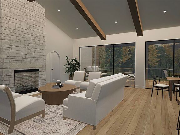 NEW CONSTRUCTION! Quality-built luxury home by Bedrock Builders LLC. Say oui to this welcoming and casual, yet effortlessly elegant home inspired by the French countryside. You will adore the superb craftsmanship and the many fine appointments throughout. The home's exterior charms include a stone front, arched portico entrance, and curved roof detail and arched garage door. The open-concept plan has a soaring cathedral ceiling with beams, a floor-to-ceiling stone fireplace, and floor-to-ceiling sliding glass doors leading to a large screened porch. Peaceful views of nature and a deep wooded lot. A beautiful kitchen features open shelving flanking a vented hood, a massive breakfast bar island and a hidden pantry. A built-in dining room hutch with glass doors offers much storage. Primary bedroom with zero-entry shower, separate water closet, dual-sink vanity, linen closet and large walk-in closet. Lower level has a wet bar, access to a large waterproofed patio, a garden storage/shop space and an exercise room with a Finnish sauna! Perfection! Magnifique! Oversized garage. Make this dream home yours today. There is still time to select some of the finishes. Estimated completion time is June 2024. Contact the listing agent for more details and questions. Listing agent is related to the seller. Agents will be paid commission the accepted offer price and not on any additional price increases.