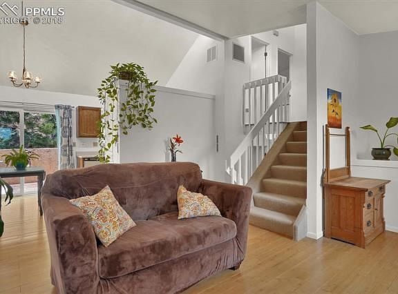 Pride of ownership best describes this home. Wonderful location/setting backing directly to Ute Valley Park bluffs/rock outcroppings and with striking views of Pikes Peak. Stunning bamboo floors throughout main and upper levels, vaulted ceilings, fireplace with hearth, new windows, new back slider, new dishwasher, and new carpet and fresh paint in basement. Master bedroom has adjoining bath and large walk in closet. Oversized one car, attached garage with space for small workout area or workbench.