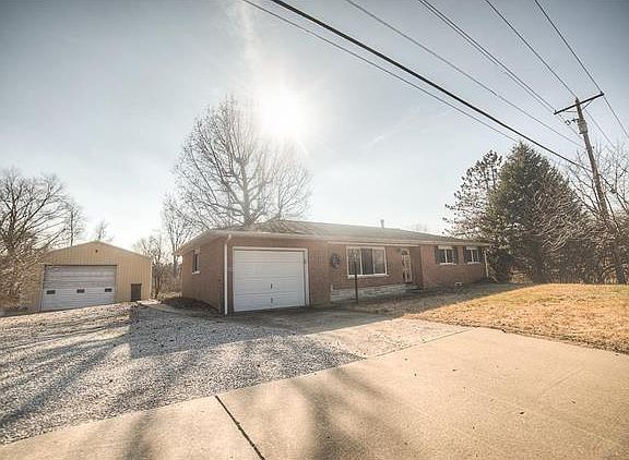 The is a nice brick ranch with 3 bedrooms and 2 bathrooms. There are wood and tile floors on the main level. The kitchen opens to the dining room. The dining room then has a set of sliding doors that open to the covered and shaded patio. It overlooks a fenced back yard. The finished basement includes has a large family room and the second bathroom. On the side of the house is a large graveled area that is big enough to turn around your vehicle so you can drive straight out the drive way instead of backing out. The large pole barn is 30 x 40. The property is currently zoned for residential.
