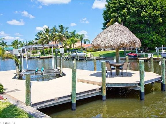 PRICE REDUCTION! CHECK OUT THE VIRTUAL TOUR & AERIAL FOOTAGE TO SEE HOW CLOSE TO THE RIVER THIS HOUSE IS! Very rarely available open plan style home with superb direct Gulf access in sought after Yacht Club area. Extremely spacious 3 bed/3 full bath pool/spa home located on an oversized lot with gorgeous mature landscaping. This home is located on one of the quickest and best direct access canals in Cape Coral so perfect for serious boaters. Features include all bedrooms have their own private ensuite bathroom, corian counter-tops, stamped concrete driveway & pool deck, electric heated pool & spa with automated spa control system, huge composite boat dock with remote control 10,000lb lift, boat canopy cover & Tiki Hut. This home is being sold turn key furnished and is featured in a European rental program. This home would make an ideal purchase for someone seeking a second home with rental income or a luxury residence with some of the best boating access in Cape Coral.